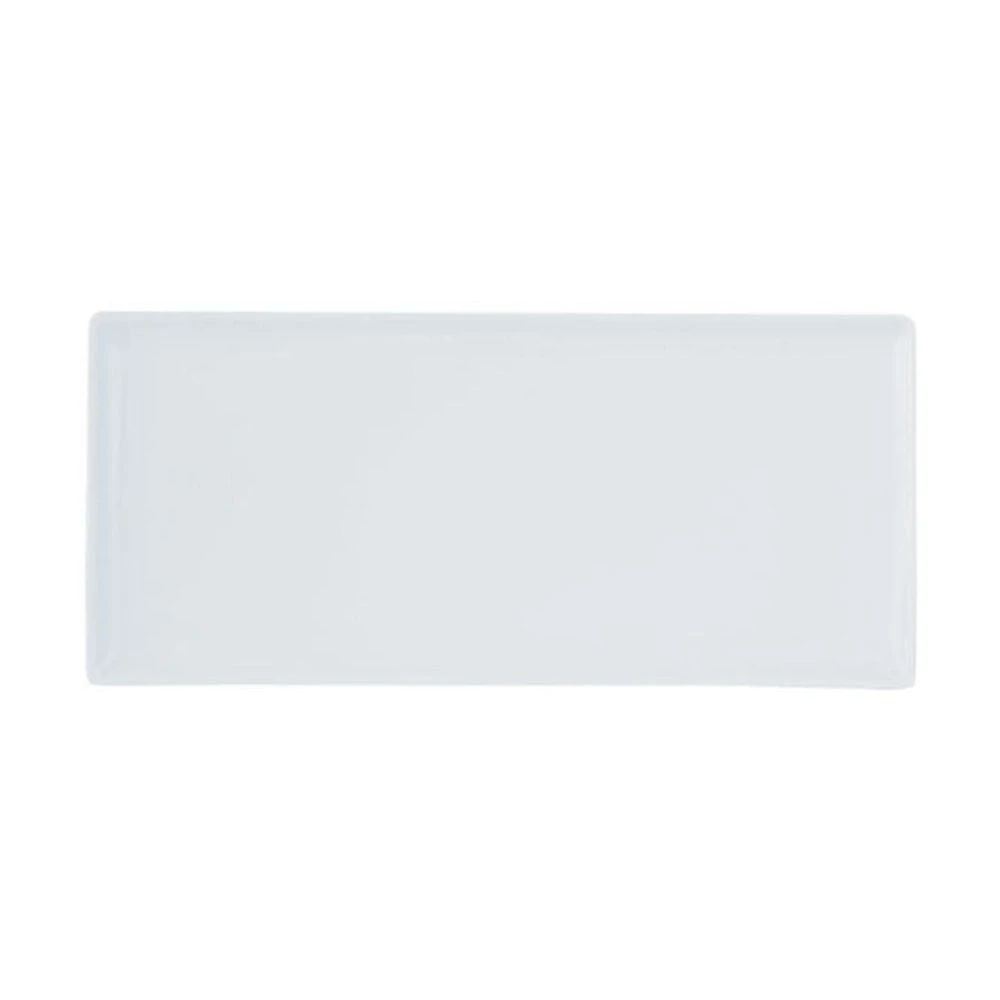 The flat rectangles are great for presenting signature dishes, the flat surface makes plating up easy. Clean modern lines make these a winner. Also vitrified for strength.